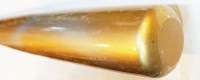 打撃部分に傷が見られます。大阪府の完全受注生産・職人手作りの木製バット専門店、KTRのトレーニングバットで、2021年に2024年現在北海道日本ハムファイターズ監督である新庄剛志氏がトライアウトに参加した際に使用したバットをベースとしたトレーニングバットです。
