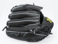 酸化によりラベルのゴールドが少しくすみ黒ずんだように見えます。投球時にグローブを握りつぶすような形の撮りやすい設計がされています。