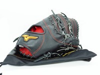 傷や破れ、汚れなどはなく、綺麗な状態のミットです。すでに型は付けられていますが、まだ硬さが残っている状態です。黒のメタリックの革が使われています。ボックス型でポケットはやや深めなので、送球や打球をしっかりと掴むことができます。オーソドックスなサイズ感ですが、やや重みがあります。